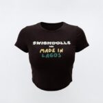 This bold SwishDolls crop top is a fun, statement-making essential crafted from soft, stretchy cotton top for a comfy, flattering fit. Featuring a cropped length with ruched side detailing, short sleeves, and a classic crew neckline.